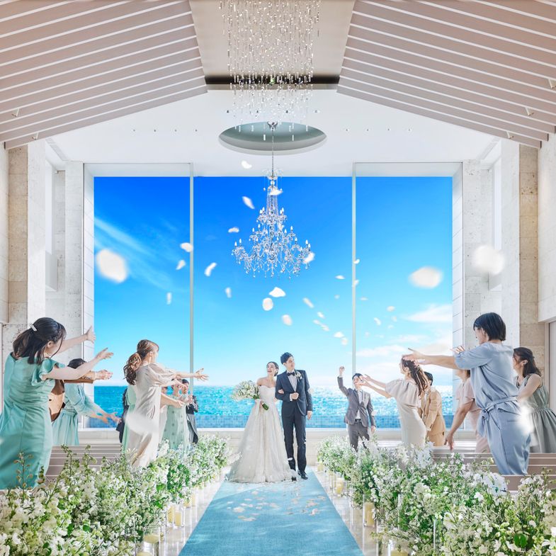 02.一面ガラス張りの窓から見える圧巻のオーシャンビューが唯一無二の純白チャペル