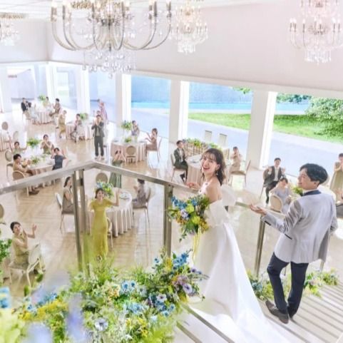 シンボルツリーのあるガーデンが披露宴会場から見えて凄く素敵です。シンボルツリーの前で撮る写真は凄く映えます。BARカウンターなどもあり、他の式場には無い雰囲気を味わえます。また披露宴会場内に階段がある為、そちらからの入場演出を取り入れたい方はおすすめです。