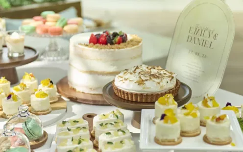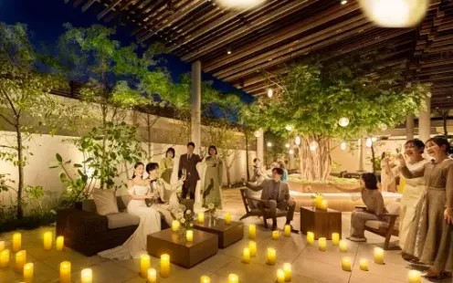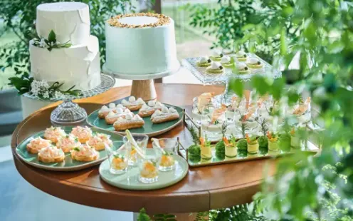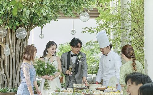 バンケットに隣接したテラスは、心地よい風が吹き抜ける緑豊かなとっておきの演出スポット。テラスからのサプライズ入場をはじめ、デザートビュッフェ、フォトパーティーなどお愉しみいただけます。参列された方々にとっても一生の思い出となるような、おふたりのオリジナリティあふれる演出をご提案いたします。
