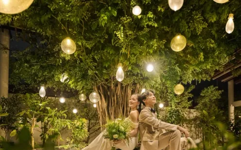 バンケット「コーラル」に隣接する<森テラス>は、心地よい風が吹き抜ける緑豊かなとっておきの演出スポット。シンボルツリーを背に叶えるガーデン挙式や、ゲストをもてなすガーデンでのデザートビュッフェ、フォトパーティなど貸切だからこそ叶えることができる演出が盛りだくさん♪また、屋根も完備しているので雨が降っても希望する演出を予定通りにお楽しみいただけます。
