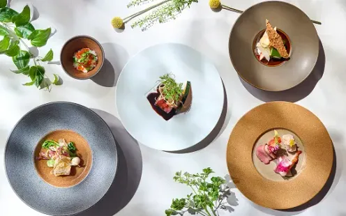 鹿児島特産の黒毛和牛をはじめ、約30種類以上の新鮮な野菜や鹿児島近海で獲れた魚介、南国フルーツなど厳選された産地直送の食材をふんだんに使い、自然の恵みが主役の季節に合わせた最高のアレンジでご提供致します。こだわりの美食をぜひお愉しみください。