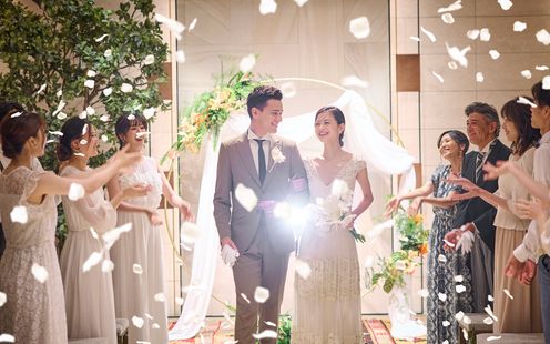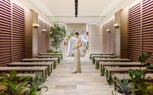館内に設けられたチャペルは、二人が積み重ねてきた過去を背景に現在と未来を結ぶ聖域。チャペルの扉が開かれてた瞬間、二人の前に広がるのは祝福に包まれる。 ふたりの想いを形にするキリスト教式も人前式も叶う優美なチャペルで、参列する人々からの温かい祝福を。