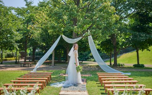 緑あふれるテラスで、海外のようなガーデン挙式を。 レストランの目の前に広がるガーデンで挙式が可能に!都心とは思えないほどの緑と陽光の中で、爽やかなガーデンを背景にリラックスした式が叶う。