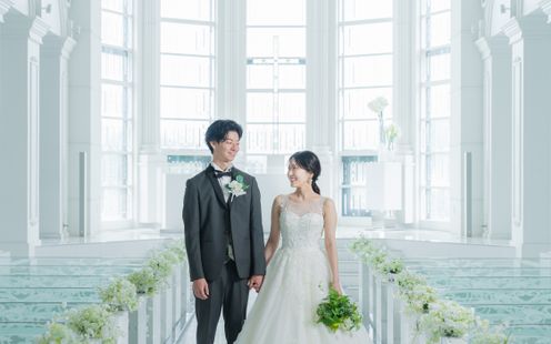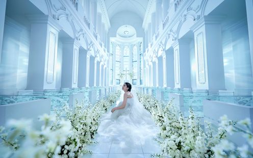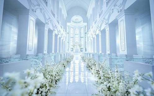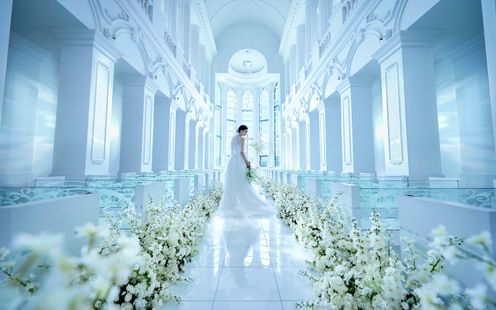 ティアラの煌めきとクリスタルの輝き、圧倒的な透明感あふれる圧巻のスケールで神秘的な挙式を