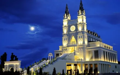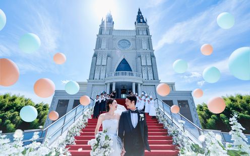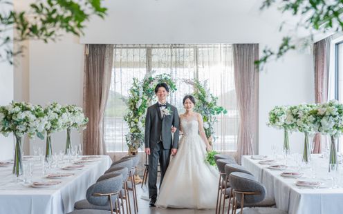 県内最長18mのバージンロードは、ふたりの人生をあらわす長い道のり。それは、大切な方たちとの人生のシーンを振り返りながら歩む道のり。生演奏と聖歌隊の調べに包まれながら涙を誘う感動セレモニーが執り行われます。挙式後は「永遠」を意味する108段の大階段でフラワーシャワーなどのアフターセレモニーを。一段一段、歩みを進めるたびに出会うゲストのキラキラな笑顔が、ふたりの明るい未来を約束します。