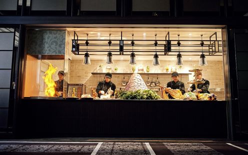 ゲストとふたりが思いっきり楽しめる演出を多彩に盛り込んでスパイアならではのオシャレなウェディングを!例えば、ゲストの目の前に並ぶ見た目もたのしいグリルブッフェや、ステーキを焼き上げる炎のフランベ…と、訪れたゲストを飽きさせない料理演出も魅力。季節食材をグリルする音や香ばしい匂いまでもたのしめる、ライブ感あふれるおもてなしを。