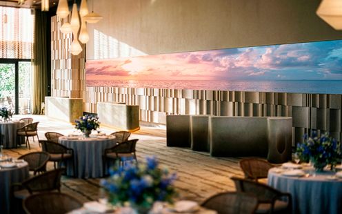 自然素材と光・風を生かした開放感と、細部までこだわった空間が非日常を演出。チャペルからパーティ、ガーデンテラスまで、シーンごとに物語をつなぎ緩急のあるリゾートウエディングを描きます。
