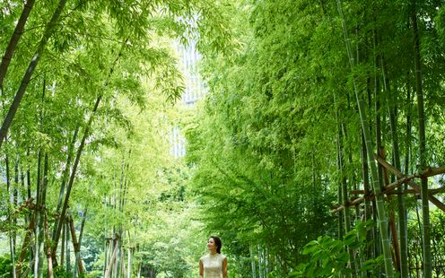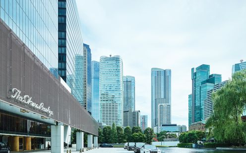 移りゆく空を映し出す凛とした佇まいの外観、オークラ敷地半分を占める緑豊かな庭園
