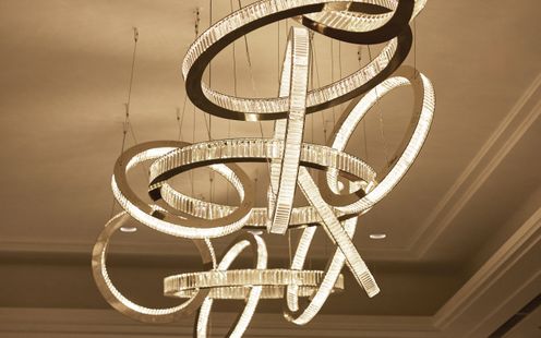 独創的なデザインシャンデリアが祝宴を彩る、品格漂うボールルームで大人のパーティーを