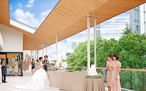 開放的な最上階にあるワンフロア貸切会場!広いテラス付きの陽光あふれる空間で寛ぎの一日を