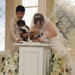| 持込料金 | ドレス・衣装(55,000円)・装花(持込不可)・ブーケ(11,000円)・引き出物(550円)・引き菓子(550円)・印刷物(無料)・音源(無料)・DVD(無料)・飲み物(持込不可)・ウェディングケーキ(持込不可)・カメラマン(有料)・ビデオ撮影(有料) ドレス・引出物などの持込に関しては、気軽に相談ください |