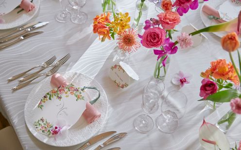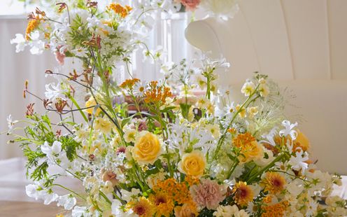自然光を活かした季節感あふれる花材やカラーリングでふたりらしいおもてなし空間を創り上げて!憧れのイメージを専属フローリストにまずは何でも相談してみて。