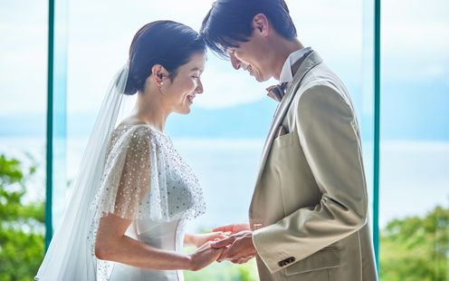 どこまでも広がる青い空とあたたかな陽光、心地良い風につつまれて、広大なガーデン挙式が実現。琵琶湖の煌めく情景や小鳥のさえずり、自然の音もおふたりへ祝福を届けます。