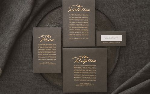 大切なゲストが過ごすテーブルにも、おふたりらしいおもてなしを散りばめて。オリジナルコンセプトに基づいたペーパーアイテムやコーディネートを多岐にわたりご紹介いたします。