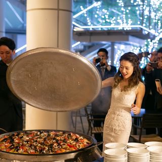 天井が高かったり、普通の披露宴会場と比べるとこじんまりしていますが、それが逆にゲストとの距離を近くし、とてもアットホームに行うことができました。また、高砂の後ろが全面窓で開放感があったのと、披露宴後半はその窓を全て開けて会場から繋がっているガーデンで巨大パエリアを振舞ったり、ガーデンに飾り付けをして写真タイムを設けたので狭さなど感じることはありませんでした。