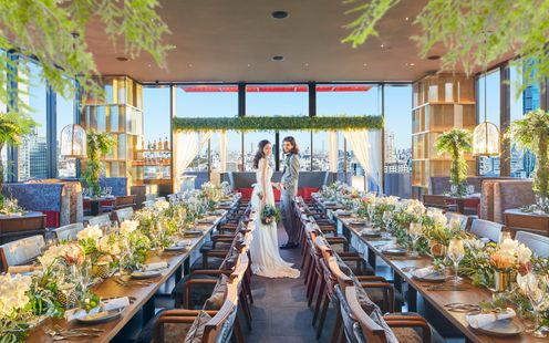 渋谷のスクランブル交差点を眼下に、渋谷と新宿の街並みを臨みながら過ごす極上のレストラン。「モダンアジアン」という革新的な料理でもゲストを魅了します。人気レストランの17F・18Fの2フロアを全て貸切ってふたりらしい自由度の高いパーティを実現いたします。会費制パーティ、帰国後パーティ、二部制など憧れのイメージを何でもご相談ください。また、立食なら1500名までのパーティに対応可能です。