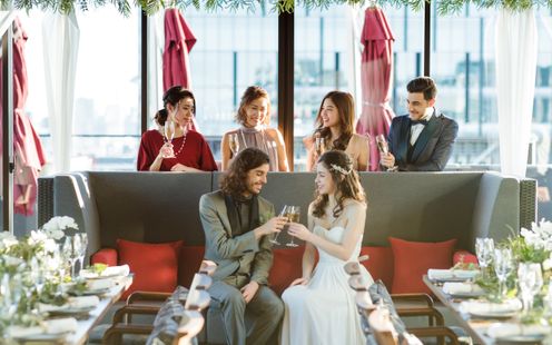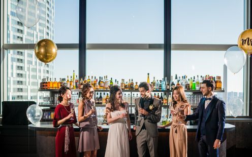 会場併設のスカイバーが付属のダイニング。ゲストのウエイティングルームとして、また、披露宴後の二次会利用でもおすすめの空間です。