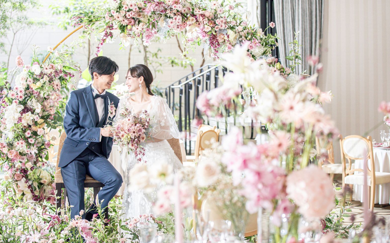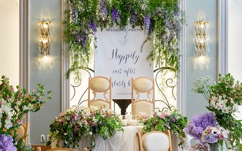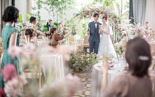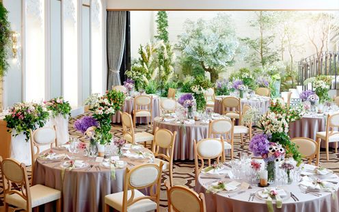 専属のフローリストがふたりの魅力を最大限に引き出すコーディネートや演出を提案。テーマやコンセプトに合ったテーブルコーディネートは季節や時期によってお楽しみいただけます。