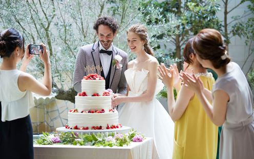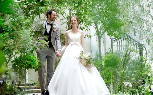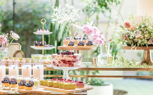 屋根付き(可動式)なので天候を気にせず演出を楽しめる大階段や、緑あふれるガーデンはパーティ会場とひと続き。デザートビュッフェを囲んでのリラックスできる歓談タイムなどふたりらしいアイデアでゲストをおもてなししていただけます。