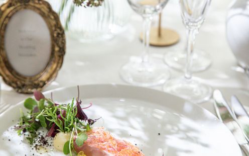 本場イタリア、ミシュラン2つ星レストランでの修行を積んだトリフォーリアの料理長。大切な一日を彩る料理は、産地や旬にこだわり厳選された素材を使用し、季節ごとにメニューをアレンジ。お箸でも召し上がれるようなアレンジや食材の個別変更の対応など幅広いゲストが愉しめるよう趣向を凝らしています。料理長自らが打合せに参加して、ふたりオリジナルのメニューを考案することも可能ですので気軽にご相談ください。フェアでシェフこだわりのオードブル・メイン(肉・魚料理)・ドルチェまで味わえるのでぜひ参加しよう。