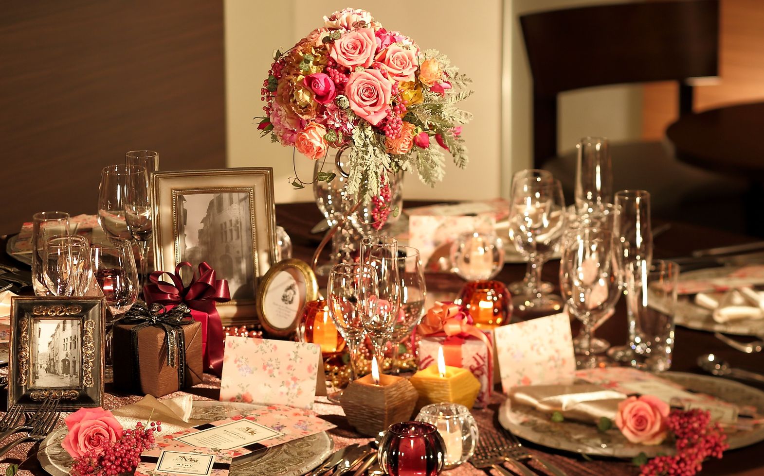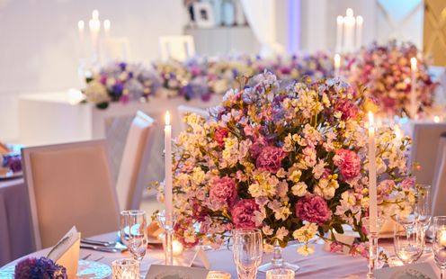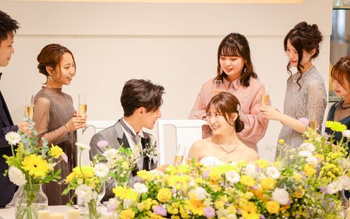真っ白なパーティ会場はどんなコーディネートも映える空間です。パーティのテーマやおふたりの共通の趣味など表現したいこだわりをお聞かせください。オリジナルセレクトのアイテムも必見です。