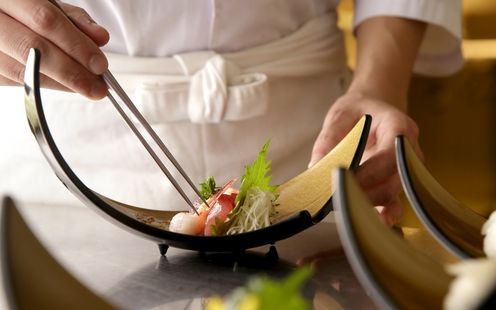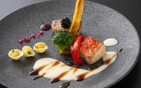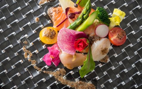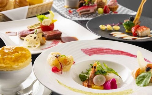 ひとつのプレートにさまざまな料理を盛り付け一皿あたりのメニューを増やすことにより多種多様なお客様の嗜好にお応えしております。地元岐阜県産を取り入れた選り抜き食材を「温かいものは温かいまま、冷たいものは冷たいまま」こだわり抜いて調理し、ゲストのお客様に格別な味わいと感動をお約束いたします。
