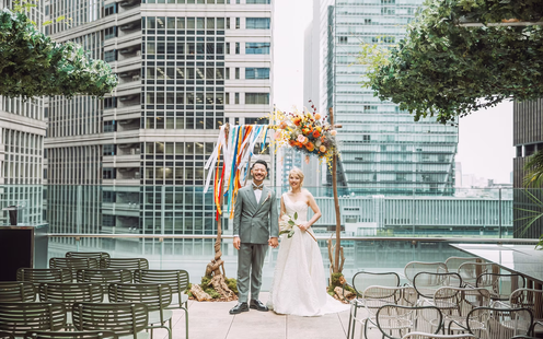東京を象徴するたくさんの建物に囲まれながら、ここにしかない“TOKYO NEW CLASSIC”なウエディングセレモニーが叶います。ふたりらしいメッセージでゲストに感謝の気持ちを伝えるアットホームな挙式を