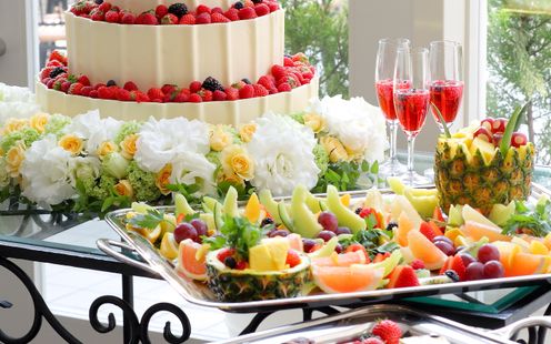 気心の知れた家族や兄弟、姉妹、親戚と囲む祝宴のテーブル。おいしい食事と想い出話に花が咲く、アットホームな時間を共有できます。隣接のキッチンからは出来立て、アツアツの料理をお愉しみいただけます。ケーキカットや、家族とのフォトギャラリーをアレンジするなどふたりの希望は何でもご相談ください。