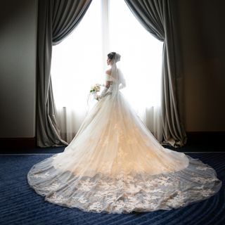 モダンなデザインの上品なシャンデリアが会場全体を彩り、どこを切り取ってもとても絵になる空間でした。特にウェディングドレスが本当に際立ちます。