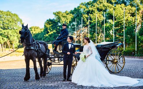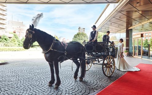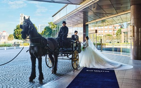 開業から30年、数多くの新郎新婦を祝福してきたウェスティン ウエディングのチャペルが、このたび初リニューアル!古代ギリシャ・ローマをモチーフにした直線的で力強い、端正なデザインに荘重な装飾を施したルネサンス様式を保ちつつ、格調高い明るくモダンなデザインへと進化。オルガン、オーボエ、聖歌隊4名の美しい調べが美しく響きわたり、誓いのシーンに彩りを添えます。祭壇奥の窓からはウェスティンガーデンが広がり、自然光が差し込むため、昼は爽やかに、夕暮れには幻想的にと、時間帯ごとに異なる表情を見せます。また、これまで数多くの挙式を見守ってきたイエローオニキスを新たに十字架として祭壇に据えることで、30年間の想いを未来へとつなぎました。挙式後はウェスティンオリジナルのホースパレードが魅力的!トランペットのファンファーレの中、ランドー馬車にのって歩んでいきます。都内でとても希少な演出にゲストの誰もがシャッターチャンスに!