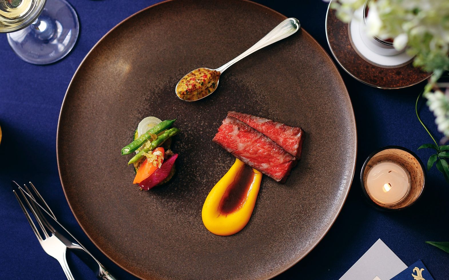 ホテル内レストランで婚礼用にあしらわれた特別コース