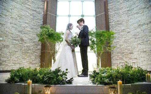 扉を開けた瞬間、溢れる緑に包まれる爽やかなチャペル