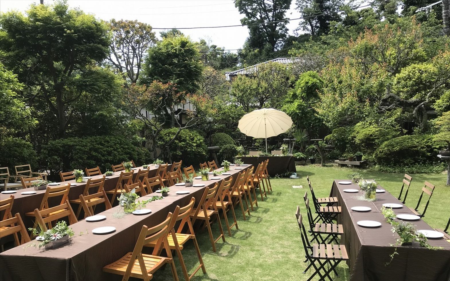 おすすめは、庭を利用したガーデンパーティ。バーベキューやビュッフェ形式でお料理をお出しします。人数分の椅子やテーブルをご用意することもできます。