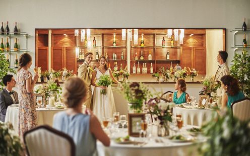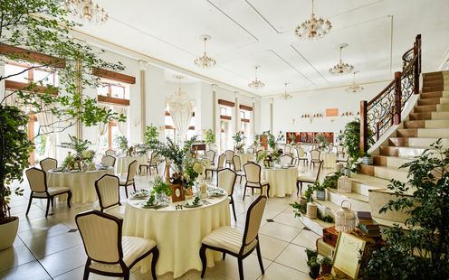 ガーデン付き会場ではふたりらしい自然体のアットホームなパーティが実現!話題の映像演出【プロジェクションマッピング】も可能なので音楽と映像のライブ感溢れる演出でパーティを盛り上げます。ガーデンではウエルカムパーティはもちろん、会場と自由に行き来もできるのでゲストも寛げるムードに。デザートビュッフェやフォトスポットをセッティングしてゲストと動きのあるパーティが叶えられます。リラックスできる雰囲気で寛ぎの一日をお愉しみいただけます。また、一つのテーブルを囲む少人数パーティも可能ですので気軽にお問い合わせください。