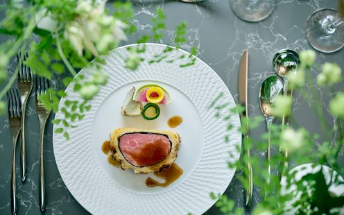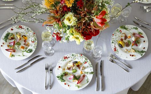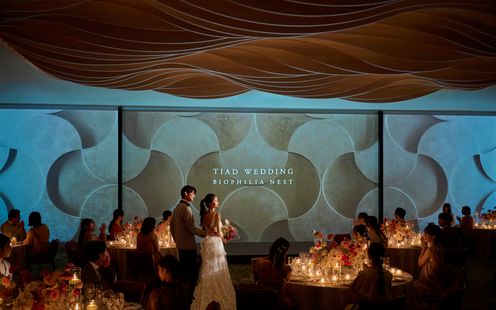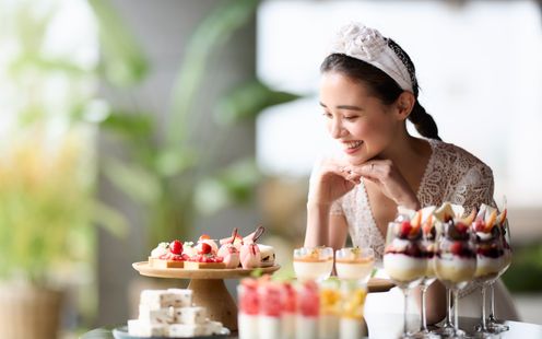 自然とのつながりを大切に、地域独自の文化を取り入れたTIAD オリジナルのウエディングキュイジーヌ “NEO CLASSIC”。この土地、この季節、そして結婚式というハレの日にふさわしい美食を提案する新しいフランス料理です。シェフ自らが地域の契約農家や酪農家に出向き生産者さんと対話しながら選び抜いた食材を仕入れています。そして、おふたりがご結婚される季節をお料理からも感じていただけるようにその時期に旬を迎える新鮮な食材をたっぷりと使用いたします。愛知が誇る陶磁器ブランド「Noritake」をはじめ、器にもこだわりそのお料理が最も映えるお皿を選んでスタイリングいたします。また、ホテルの空間を知り尽くした専属のパティシエが各会場の世界観にふさわしいウエディングケーキをご提案いたします。また、おふたりのスタイルやパーティのテーマなどに合わせてデザインするフルオーダーのケーキも承ります。