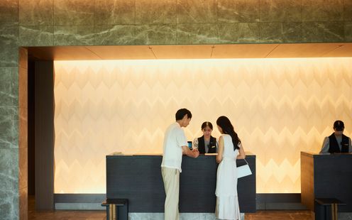 普段はアフタヌーンティーを楽しむ広々としたスペースがゲスト待合室に。