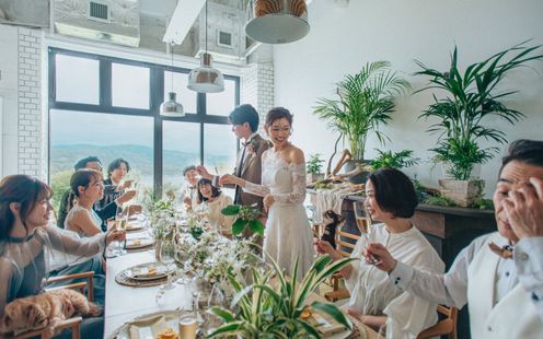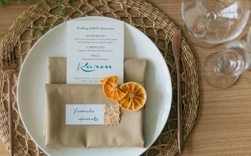 愛犬=家族と同じ空間でお食事をお楽しみいただけます。もちろん愛犬にもフルコースメニューをご用意。また乾杯やケーキ入刀も一緒に。KAREN浜名湖withDogだからこそご提案できる最高のウエディングシーンを実現しましょう。