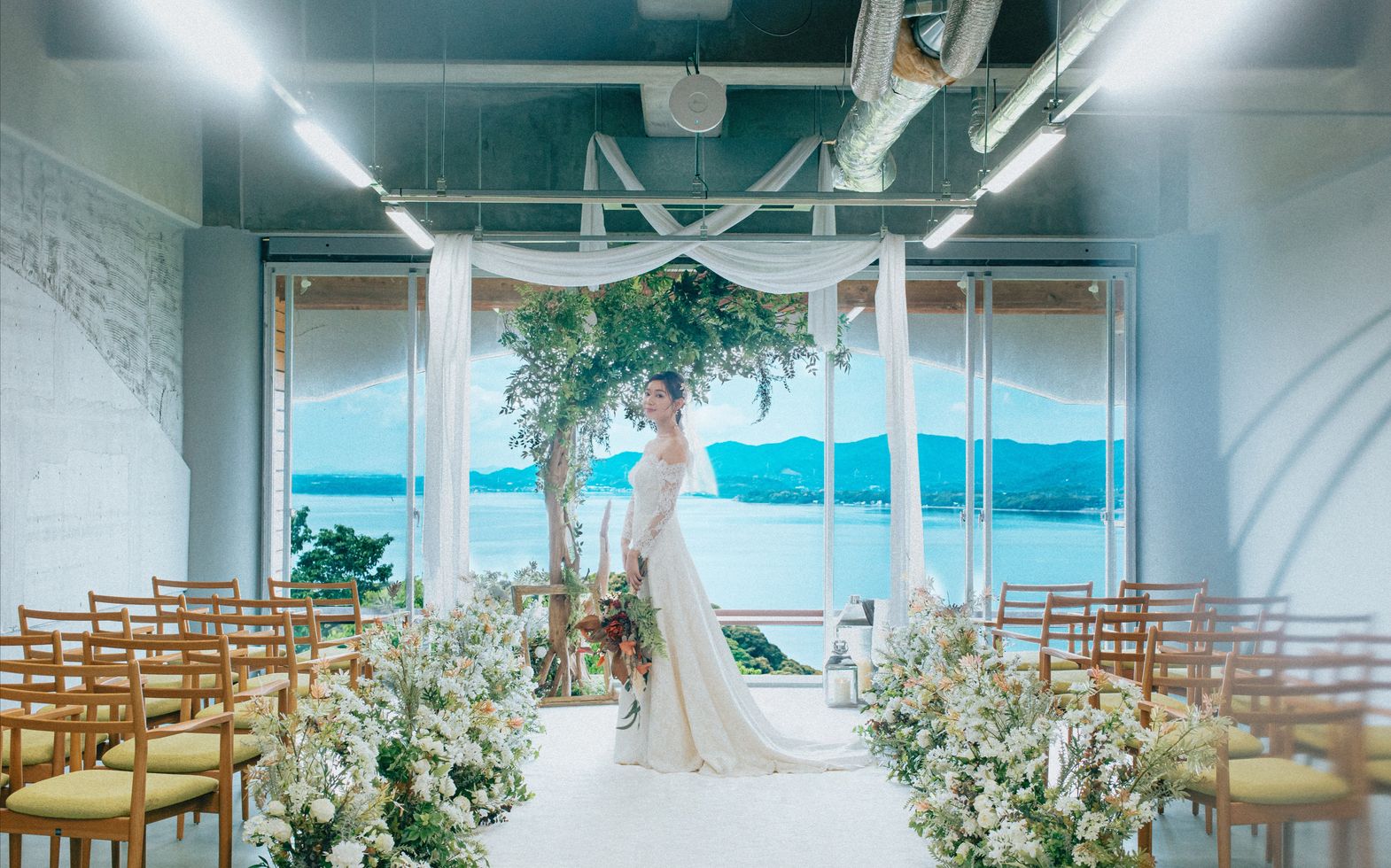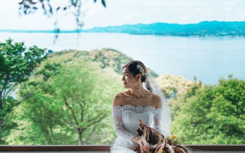 美しい浜名湖を見渡す絶好のロケーション。明るい光に包まれて、愛犬や家族と一緒に和やかな挙式をお迎えください。