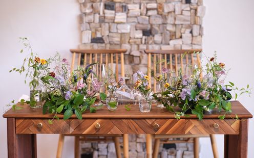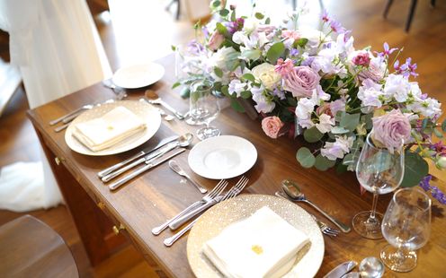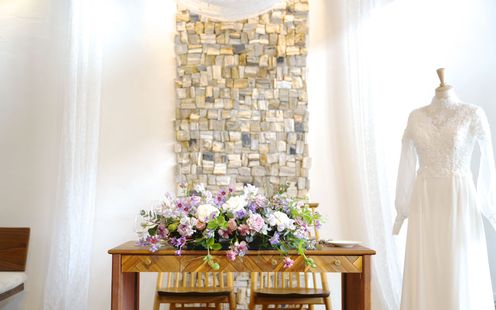 ナチュラルな空間を彩る装花のコーディネートは、おふたりらしさを表現する大切なアイテム。イメージに合わせてご準備いたします。