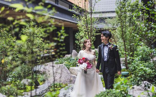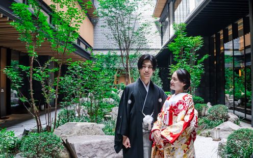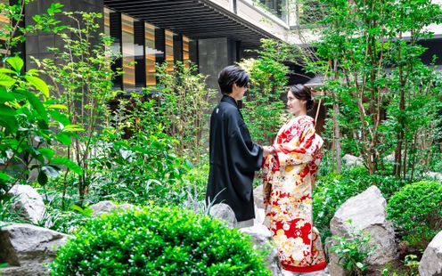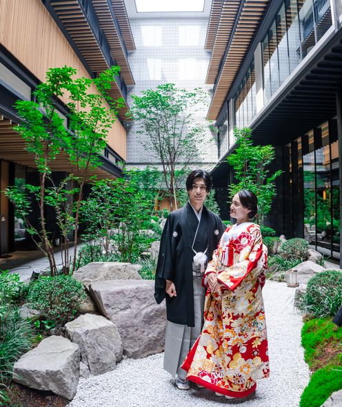美しく手入れされた中庭はどんな衣裳も映えるフォトスポット