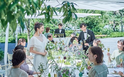 パークビューの開放感と、一組貸切というプライベート感を両立。ガーデン、パーティ会場、ラウンジ等一棟すべてを使用したウエディングシーンをご提供します。装飾も演出も、ゲストへのおもてなしも貸切だからこそ叶う自由さで記憶に残る結婚式を作り上げます。