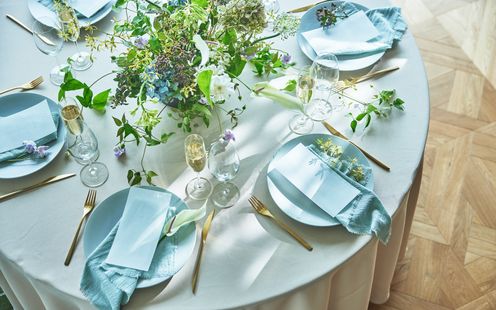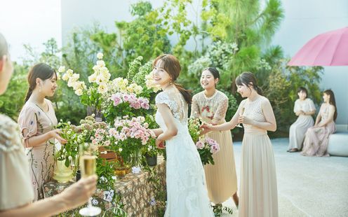 どこにいても庭園を望み、自然と一体感を味わえる空間設計。自然光とスタイリッシュな空間を活かしながら、ふたりならではのシーズナルフラワーで彩ります。パーティのコンセプトやブライズルックを引き立てる、ふたりだけのフラワーアレンジをコーディネーターがご提案。大切なゲストが過ごすテーブルにも、ふたりらしいおもてなしをちりばめて。オリジナルコンセプトに基づいたペーパーアイテムやコーディネートを多岐にわたり紹介いたします!