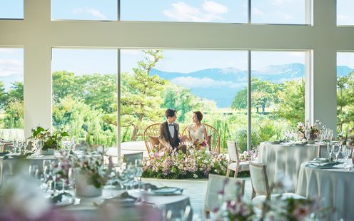 四季折々の美しい絶景がふたりを祝福。和モダンな空間でゲストと自然体の笑顔溢れる1日を