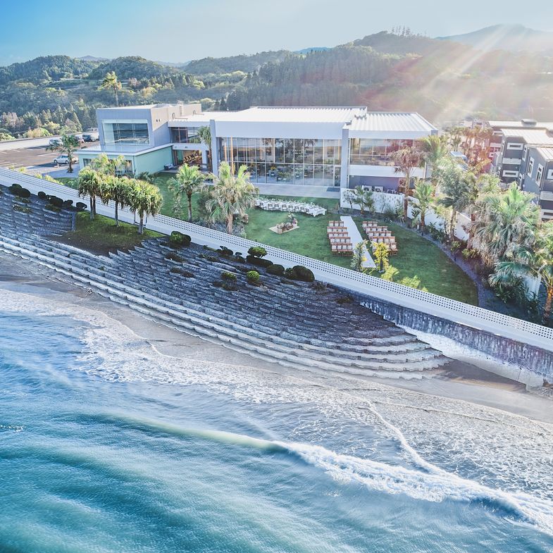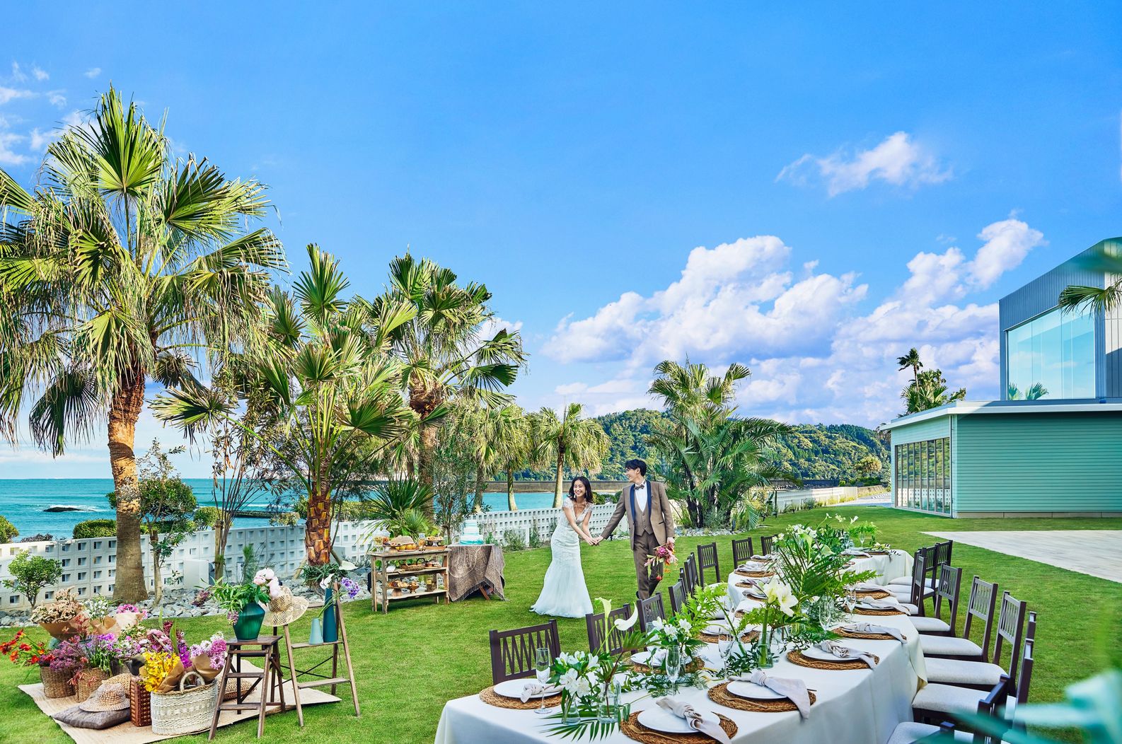 特徴 | <きらめく海が彩る空間を貸切>太平洋と青島を見渡す4800㎡の敷地に建つゲストハウス | 青い空と海が見える独立型のチャペルがあり、緑のヤシや広大なガーデンが広がっています* | 【1日1組!完全貸切】緑溢れる邸宅で、ふたりらしい演出やおもてなしが叶う特別な1日 | |||