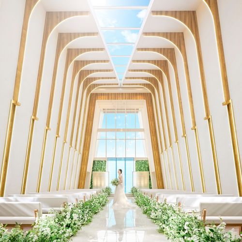 02.【全天候型チャペル】天窓から降り注ぐ自然光と木のぬくもりを感じる空間で心温まる挙式