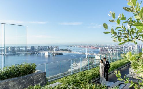 35Fのロビーフロアにはスカイデッキが誕生。東西両サイドには屋外テラスが広がり、屋内と屋外の境界を感じさせない自然と調和した優雅なひとときを演出します(完成予想図)同フロアにはオールデイダイニング、ロビーラウンジ、スパ、ジムも揃い、訪れたゲストにくつろぎの時間をより豊かに彩ります。ウェディングではデッキでの撮影も叶います。