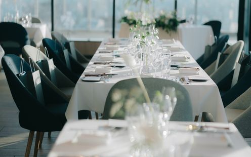 一面の窓から絶景を望む落ち着いた個室での会食