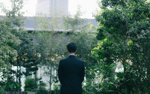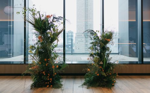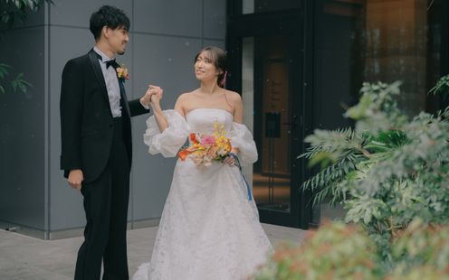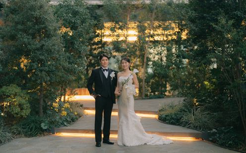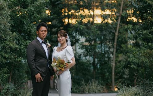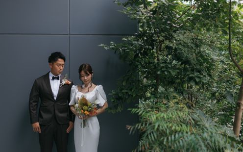 東京の真ん中、渋谷の上階に緑が溢れる空間。ビルに囲まれながらも落ちついた雰囲気で、ここで挙げる方しが撮影できない特別なテラス。
