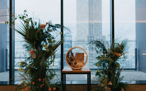 どこまでも広がる青空やきらめく夜景をバックにおふたりらしい人前式。形式にとらわれず、ふたりらしい誓いを大切な人たちと一緒に分かち合える、あたたかなセレモニーが叶います。他、挙式会場のご案内も可能です。