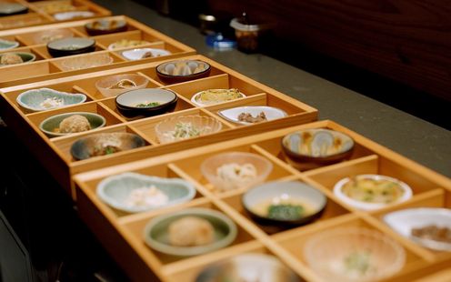 12席限定のカウンターのみという贅沢なスタイル。全てがシェフズテーブルとなり、沖縄の食文化をライブ感あふれる形で堪能できます。屋根には琉球赤瓦を使用し、白い漆喰とのコントラストが美しい佇まい。店内は琉球石灰岩や木材、石など自然素材をふんだんに取り入れ、天井には琉球ガラスの柔らかな光が灯ります。懐かしさと新しさが調和する空間で、大切なゲストと少人数で心温まるひとときをお過ごしください。